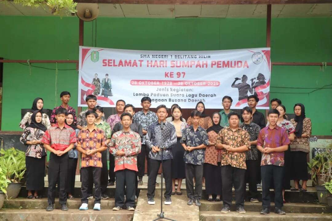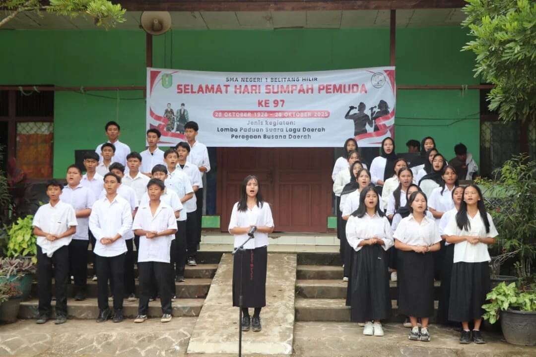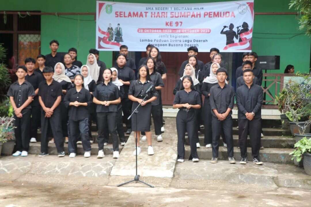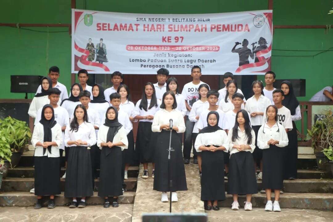 SMA Negeri 1 Belitang Hilir menggelar lomba Lagu Daerah dan Fashion antara siswa dalam rangka menyambut Hari Sumpah Pemuda ke-97 tahun 2025. Dari pihak sekolah jauh hari telah mempersiapkan kegiatan sebagai momentum kepada siswa yang mewarisi semangat Sumpah Pemuda.Kepala Sekolah SMA Negeri 1 Belitang Hilir Pak P. Kusnianar, S.Pd mengatakan untuk menyambut hari betsejarah tersebut pihaknya mengadakan lomba dilingkungan sekolah selama 2 hari berturut-turut melibatkan guru dan siswa mulai kelas X s/d XII. "Ada dua perlombaan yaitu paduan suara dengan lagu-lagu daerah dari seluruh Indonesia serta fashion show" kata Kusnianar, S.Pd. Peserta lomba paduan suara maupun fashion show bebas memilih lagu daerah mana di Indonesia sama halnya dengan fashion show pakaian adat dari daerah mana diberi keleluasaan siswa untuk memilih."Ini dalah satu upaya sekolah mengajak siswa untuk mencintai budaya nasional sehingga mereka merupakan cikal bakal generasi muda kelak pemimpin bangsa" terangnya. Pada kesempatan sama Bidang Kesiswaan SMA Negeri 1 Belitang Hilir Nur Apriana Mulyani,S.Pd mengatakan saat ini ada 14 kelas dari mulai kelas X s/d XII sudah siap mengikuti lomba yang direncanakan dilaksanakan di Halaman Sekolah. "Untuk hari pertama lomba paduan suara lagu daerah, hari kedua sekaligus penutupan lomba fashion ini juga setiap kelas mengirimkan perwakilan" jelasnya yang pada kesempatan ini didampingi juri lomba Muhamad Tarmizi, S,Pd. Pada kesempatan akhir Kepala Sekolah SMA Negeri 1 Belitang Hilir berharap siswa peserta lomba mengikuti kegiatan dengan tertib satu hal lagi disampaikan siswa yang lain bebas memberi support kepada teman-temannya.