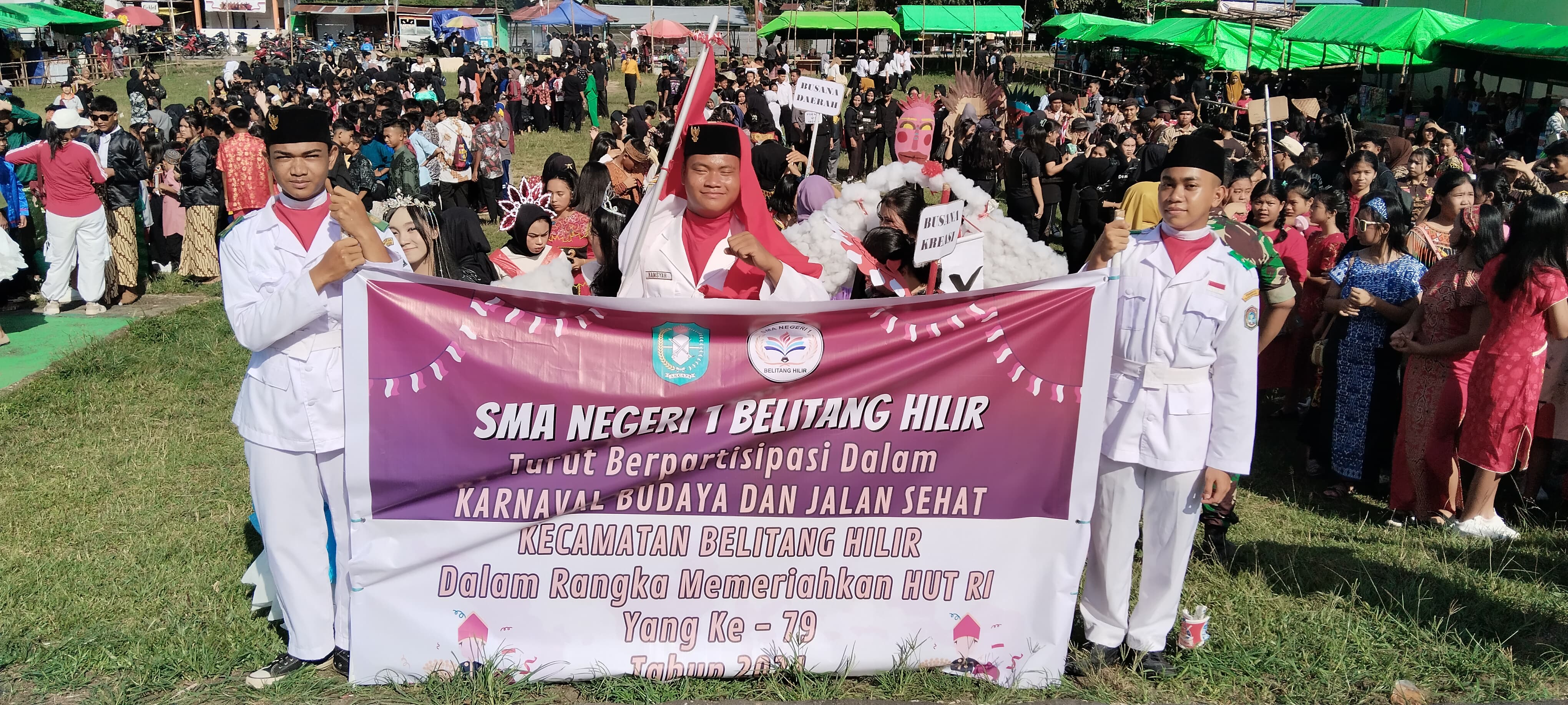 Kegiatan ini di laksanakan pada tanggal 31 Agustus2024 dalam rangka memeriahkan hari Kemerdekaan Republik Indonesia yang ke-79 di Kecamatan Belitang Hilir, Seluruh siswa SMAN 1 Belitang Hilir bersama dewan guru juga ikut berpartisipasi memeriahkan, Kegiatan ini lansung di komandoi oleh Camat Belitang Hilir yakni Bapak Evodius, S.Sos, M.AP., Kemudian Danramil Belitang Hilir dan Kapolsek Belitang Hilir, Kegiatan di laksanakan agar semua warga yang ada kecamatan belitang hilir bisa bersantai berolahraga jalan sehat dan juga bisa mengenalkan budayanya masing dalm bentuk karnaval budaya, selain itu juga banyak doorprize yang dibagikan kepada masyarakat belitang hilir. selain itu SMA Negeri menjadi pemenang dalam peserta terbanyak dan peserta dengan pekaian terfavorit, dan mendapatkan piagam dari panitia pelaksana.