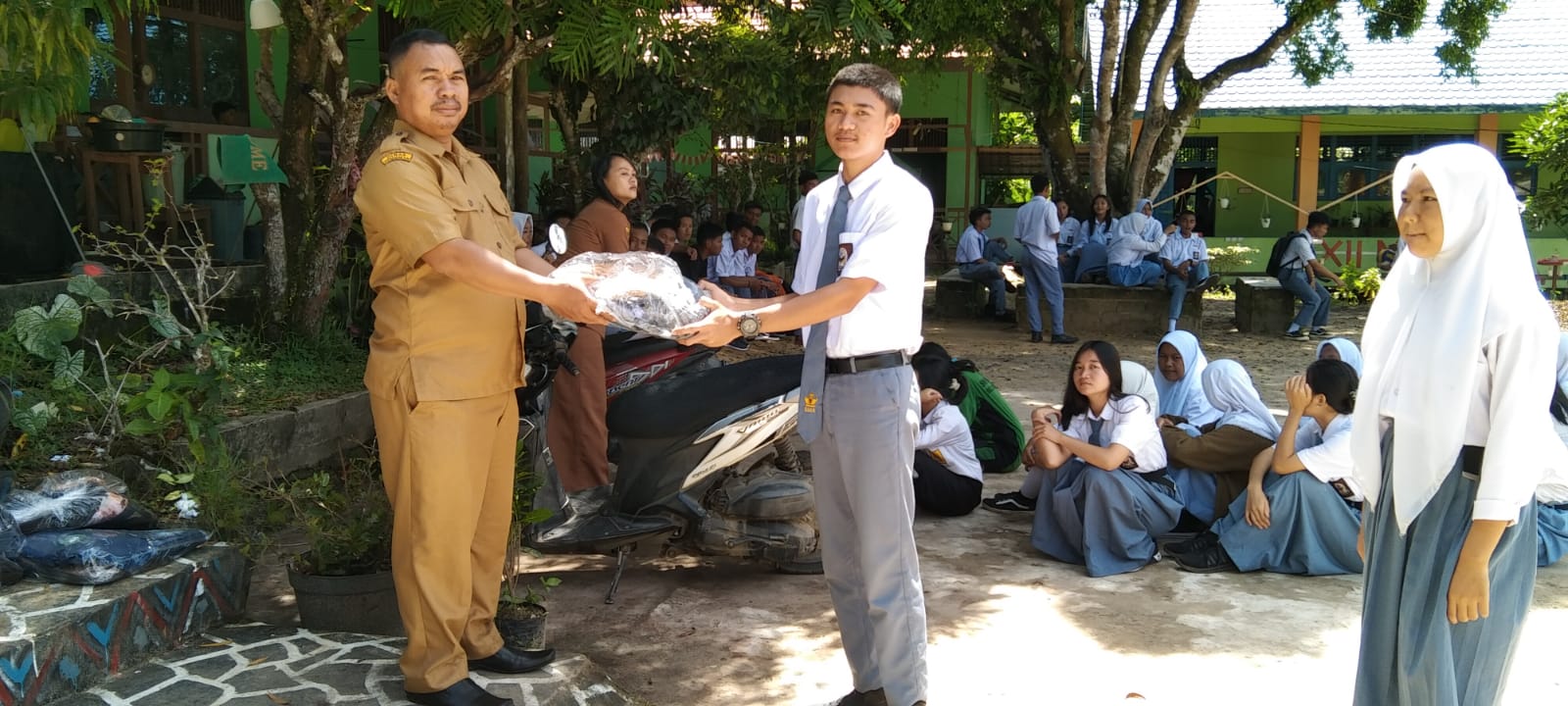 Kepala SMAN 1 Belitang Hilir Menyerahkan Bantuan Perlengkapan Sekolah Kepada Siswa/Siswi SMAN 1 Belitang Hilir